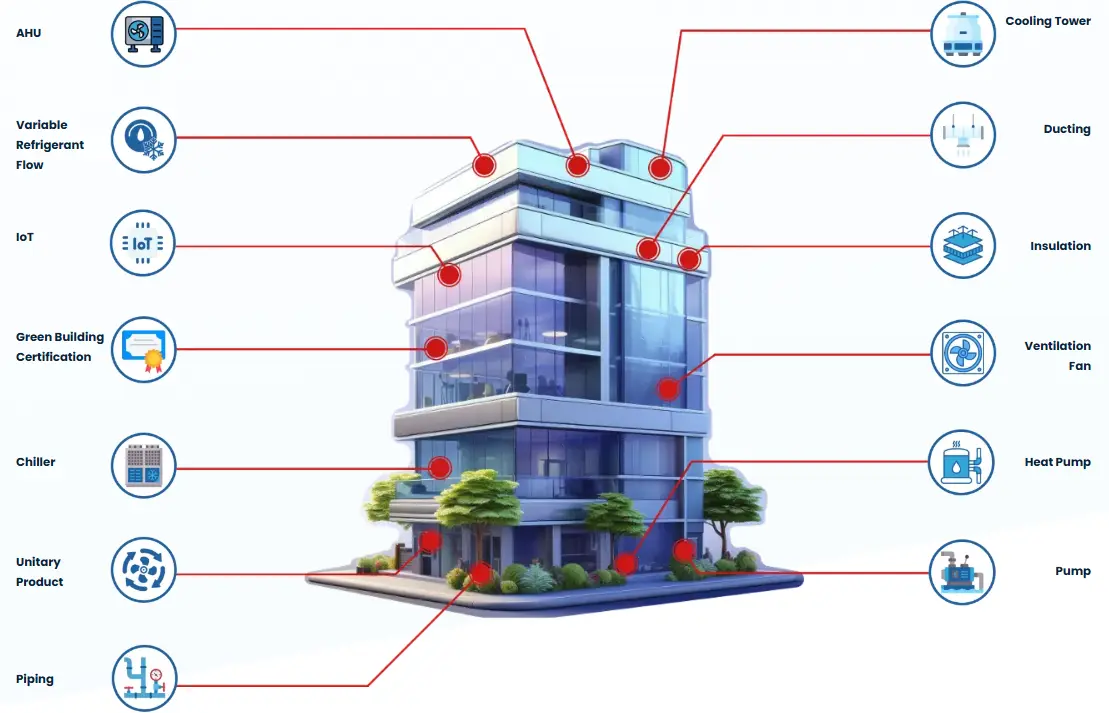 Sistem pemanas dan pendingin hemat energi kami menjaga kebutuhan suhu gedung sekaligus mengurangi penggunaan energi, menawarkan solusi yang berkelanjutan dan hemat biaya untuk bisnis dan pemilik properti.