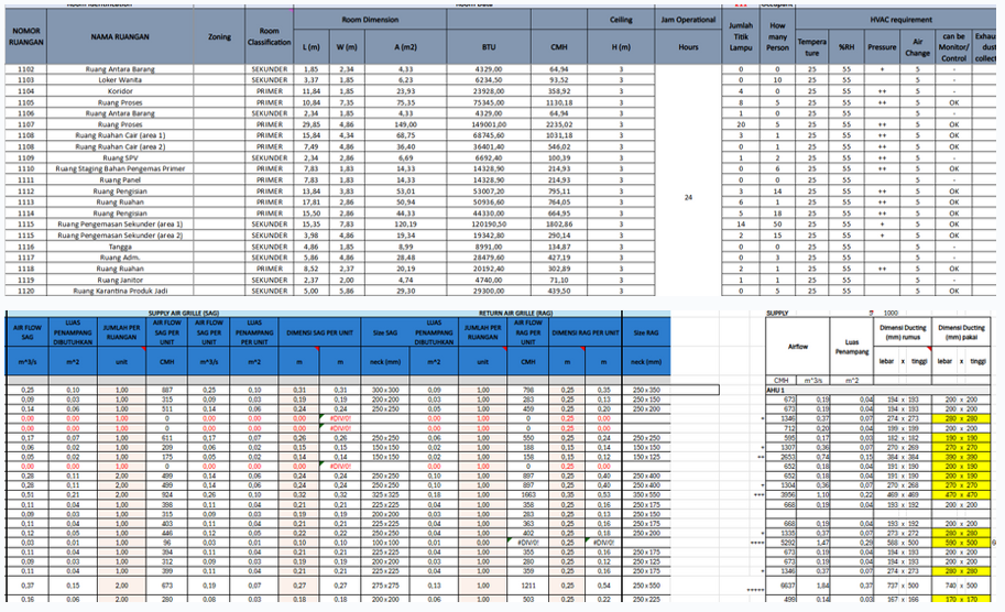 TEDES melakukan analisis untuk mencari solusi terkait permasalahan HVAC yang ditemukan pada saat survei dan melakukan perhitungan desain sesuai dengan kebutuhan HVAC.