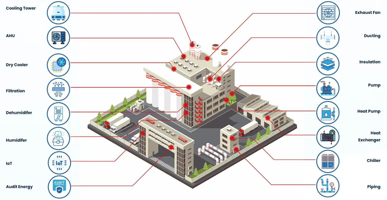 Sistem pemanas dan pendingin industri yang inovatif yang disesuaikan dengan kebutuhan pemanas dan pendingin Anda. Kami memastikan instalasi kami mematuhi semua peraturan, kode, dan pedoman industri setempat yang relevan.