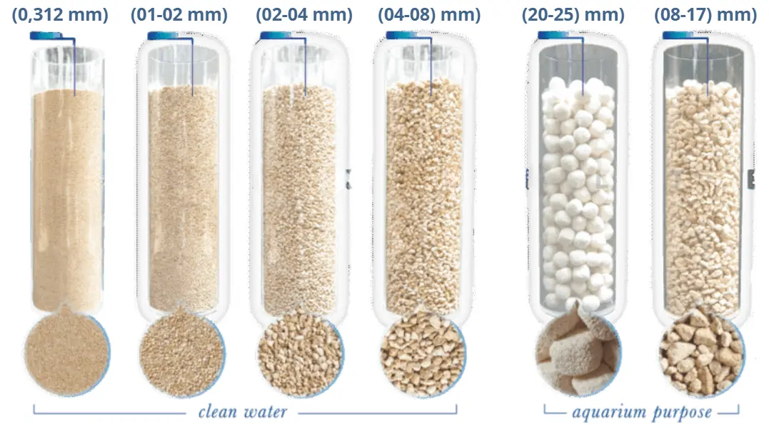 Penyaring Air: Spesialisasi dalam semua jenis air, Biofilter: Mengkhususkan diri pada air berkapasitas kecil, Filter Granulasi: Mengkhususkan diri pada air berkapasitas kecil.